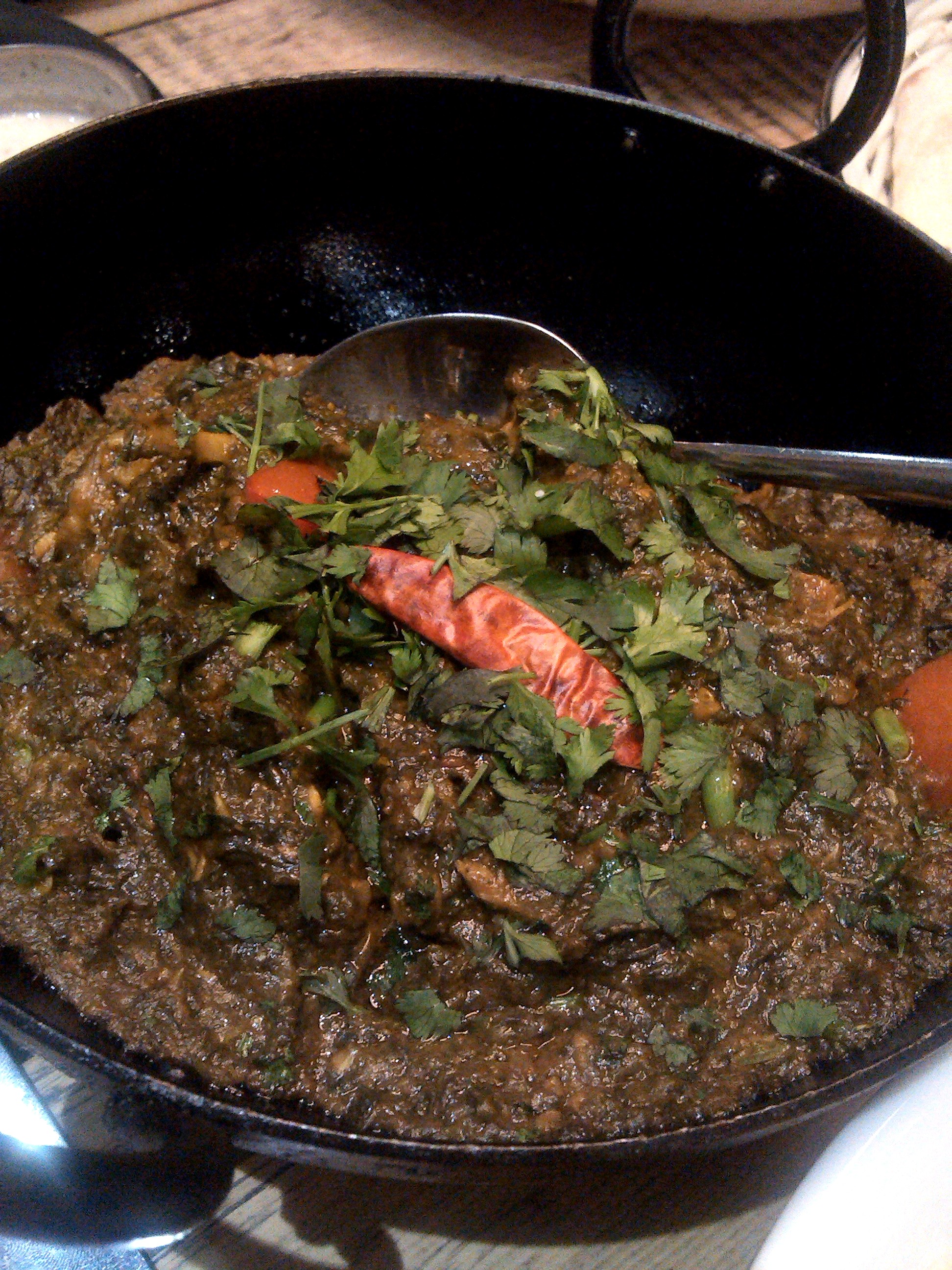Moving on to mains, I ordered the Palak Goshat (£8.95) which is lamb cooked in fresh tomatoes, onion sauce with spinach puree and Asian spices. I was so impressed with myself for not just going for a chicken tikka masala or something! MrJ ordered the Chicken Karahi (£8.25) which is chicken cooked in tomato and yoghurt sauce with special Punjabi style Asian spice & garnished with fresh coriander, bullet chilli & ginger. We also ordered two naan breads (plain & garlic), and the waiter was kind enough to bring me a big bowl of yoghurt in case I couldn’t handle the spice!