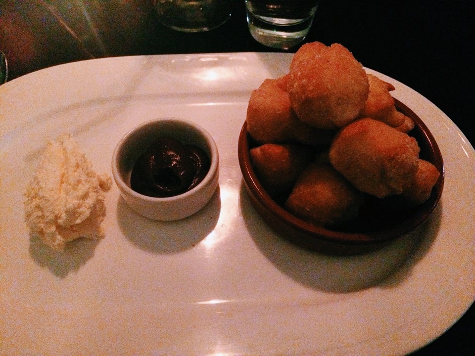 Despite being very full (the portion sizes are generous) it was time for dessert which as any sensible person knows, cannot be denied. Nialah’s ten-year-old brother once told her, “There is always a separate stomach for pudding.”, so heeding his sound advice, we ordered the hot chocolate and hazelnut brownie (served with pistachio ice cream and chocolate sauce). It tasted as rich as it smelt, but was balanced by the scoop of ice cream. The bombolini (mini doughnuts) with chocolate sauce and cream were equally as satisfying. There’s just nothing like popping a whole ball of fried, sweet, wonderfulness coated in warm, molten chocolatey wonderfulness into your mouth and having a little wonderful explosion of wonderfulness.