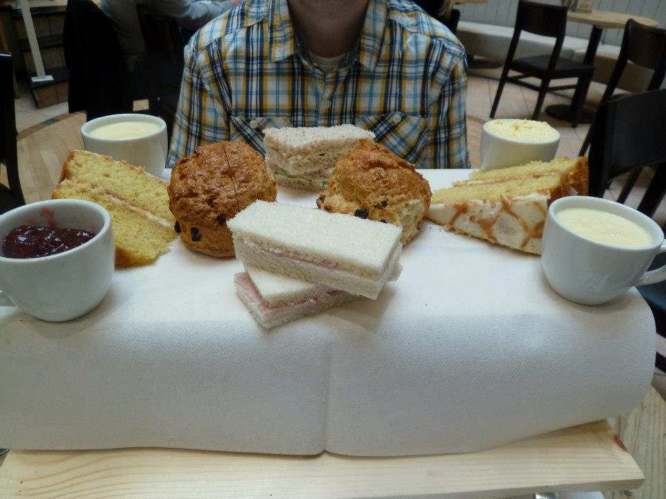 I love the Geordie twist on the sandwich tier with the addition of ham and pease pudding (try explaining that to your southern friends!)  This tea comes with a monster scone each, which arrives ready made with a huge amount of jam and cream stuffed inside.  The cakes on the stand come in massive slabs.