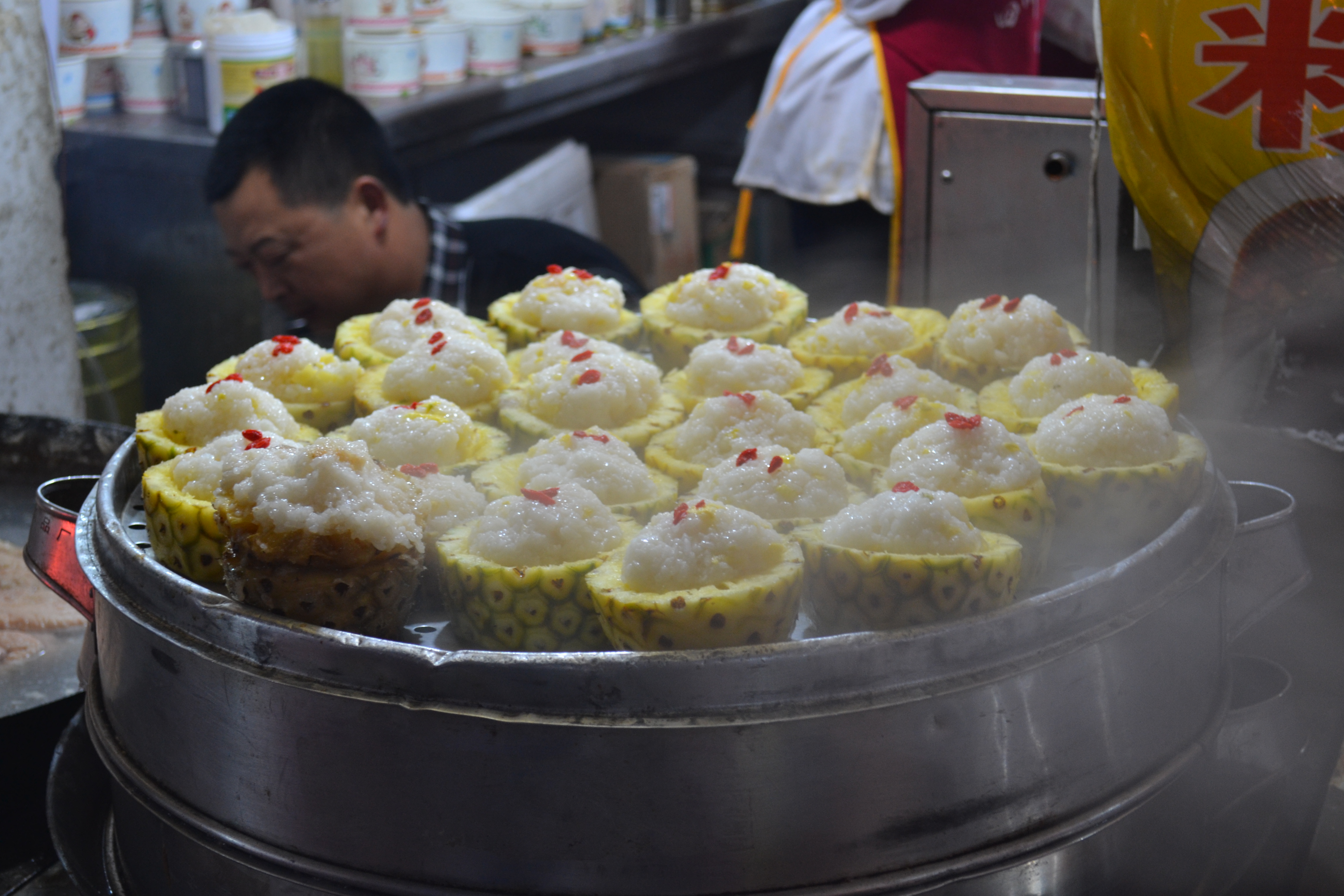 Now we’re getting into the good stuff! Street food is abundant in Chengdu. It’s cheap, it’s fast and it’s so hard to make a choice on what to buy! You have fruit being sold on little carts on the back of bikes, changing with the seasons. I loved the fresh pineapples, watermelon, peaches and grapes.