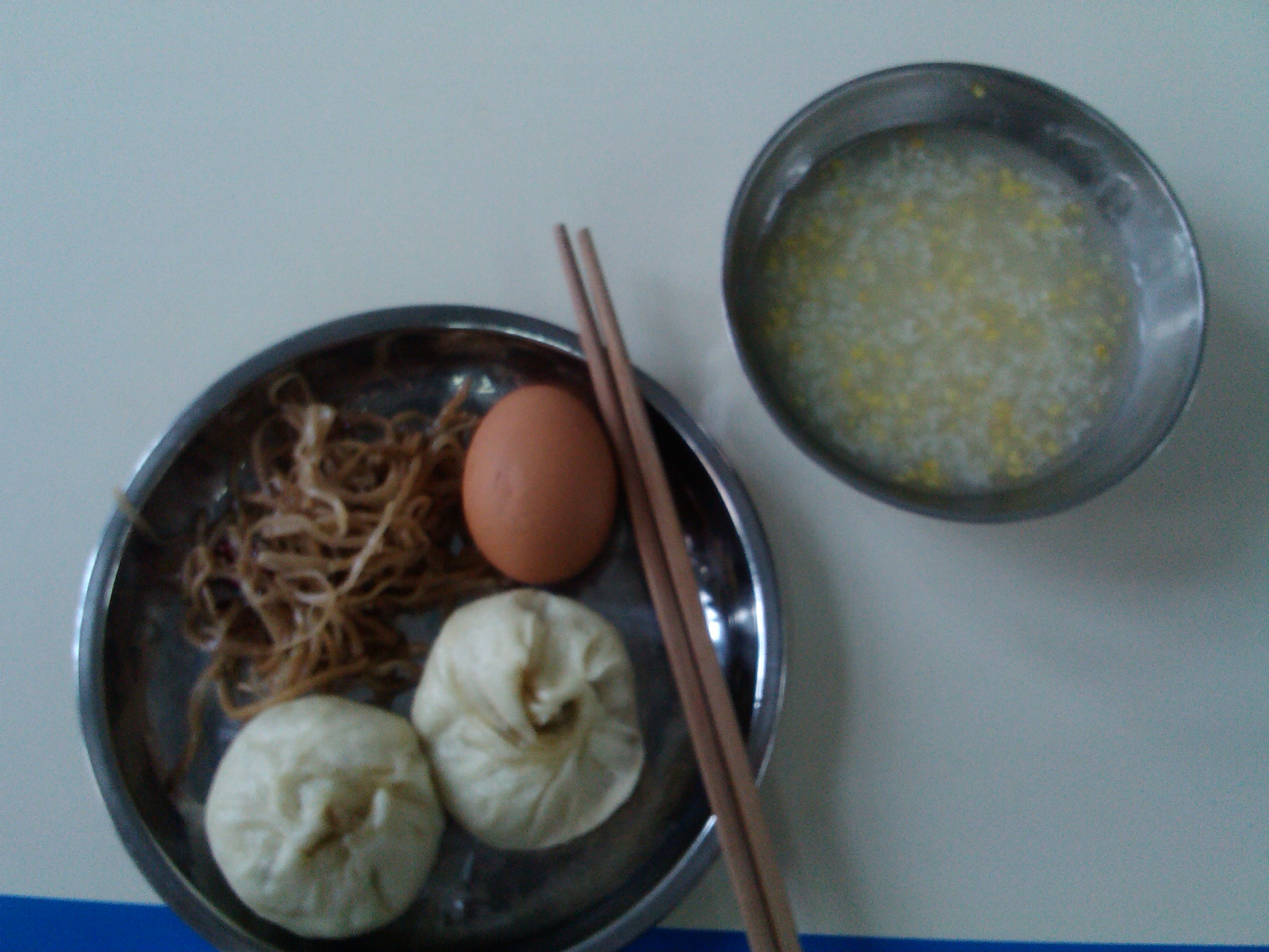I used to love eating breakfast at my school’s canteen. I would get 2 big dumplings (baozi), a handful of pickled vegetables, a boiled egg and a bowl of rice porridge for 20p!