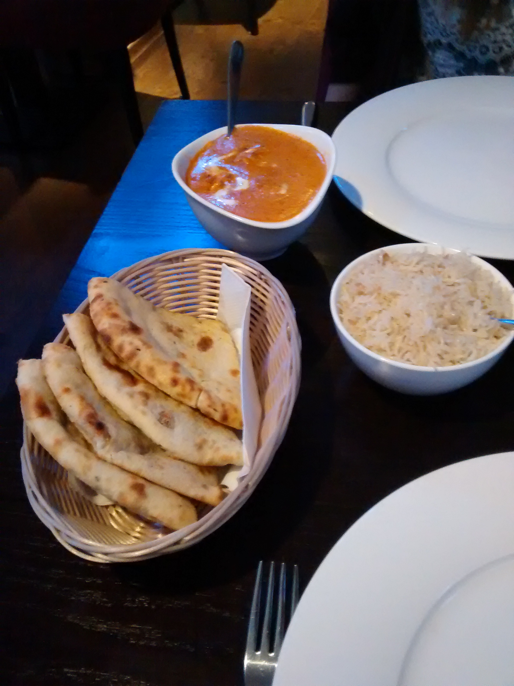 Although we had only ordered one side of rice and one naan bread, it was a struggle to finish our meal, but we did – just about.