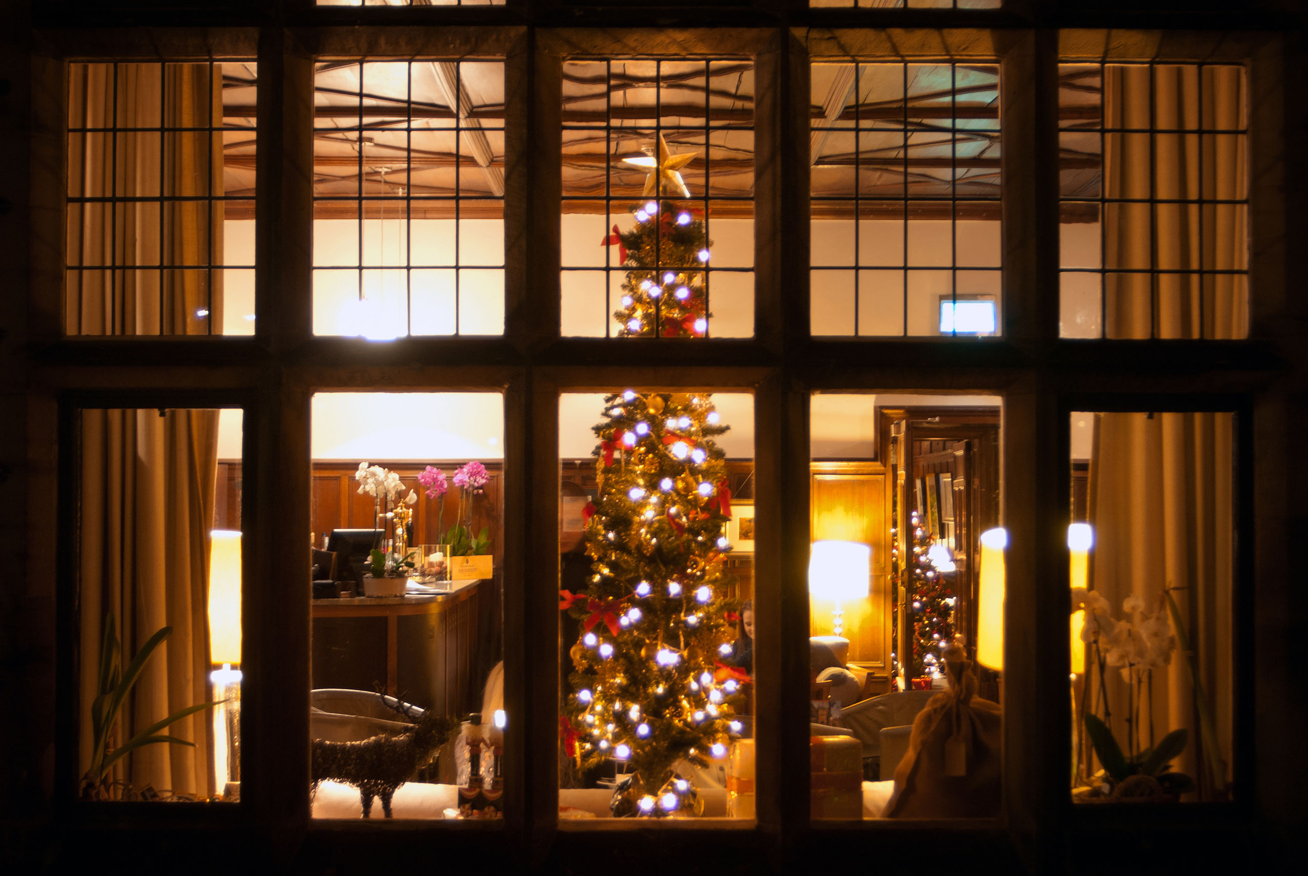 A friend recommended the afternoon tea at Jesmond Dene House as the best she’d ever had, so when Rosie asked us to review their special festive afternoon tea event, we jumped at the chance. Jesmond Dene House is one of Newcastle’s architectural gems, a beautiful majestic building that’s full of character, tucked away in a woodland backdrop. We wandered down on a drizzly December afternoon, and as we left the hustle and bustle of the town centre behind us, we followed the sound of the saxophone playing Christmas tunes outside the Grand Hall. The afternoon tea was being served in several different dining rooms, all dressed spectacularly in Christmas lights and garlands. We were seated in a garden room that was cosy and inviting and incorporated the original grand architecture of the building but also had large windows with a view of the grounds.